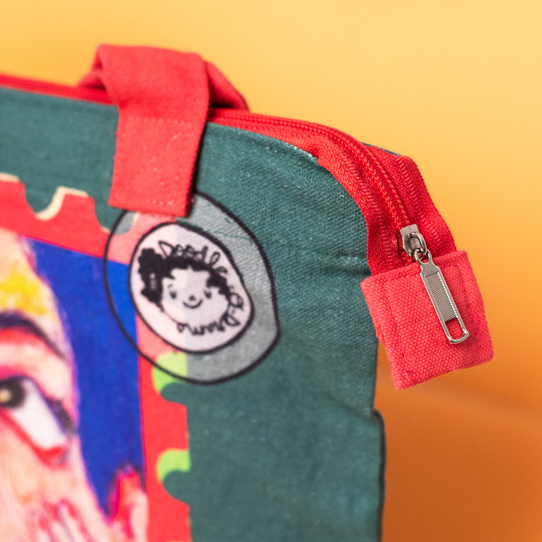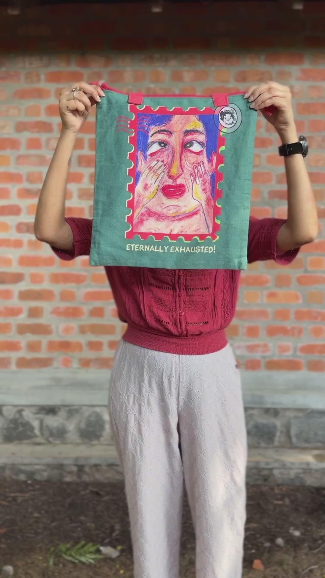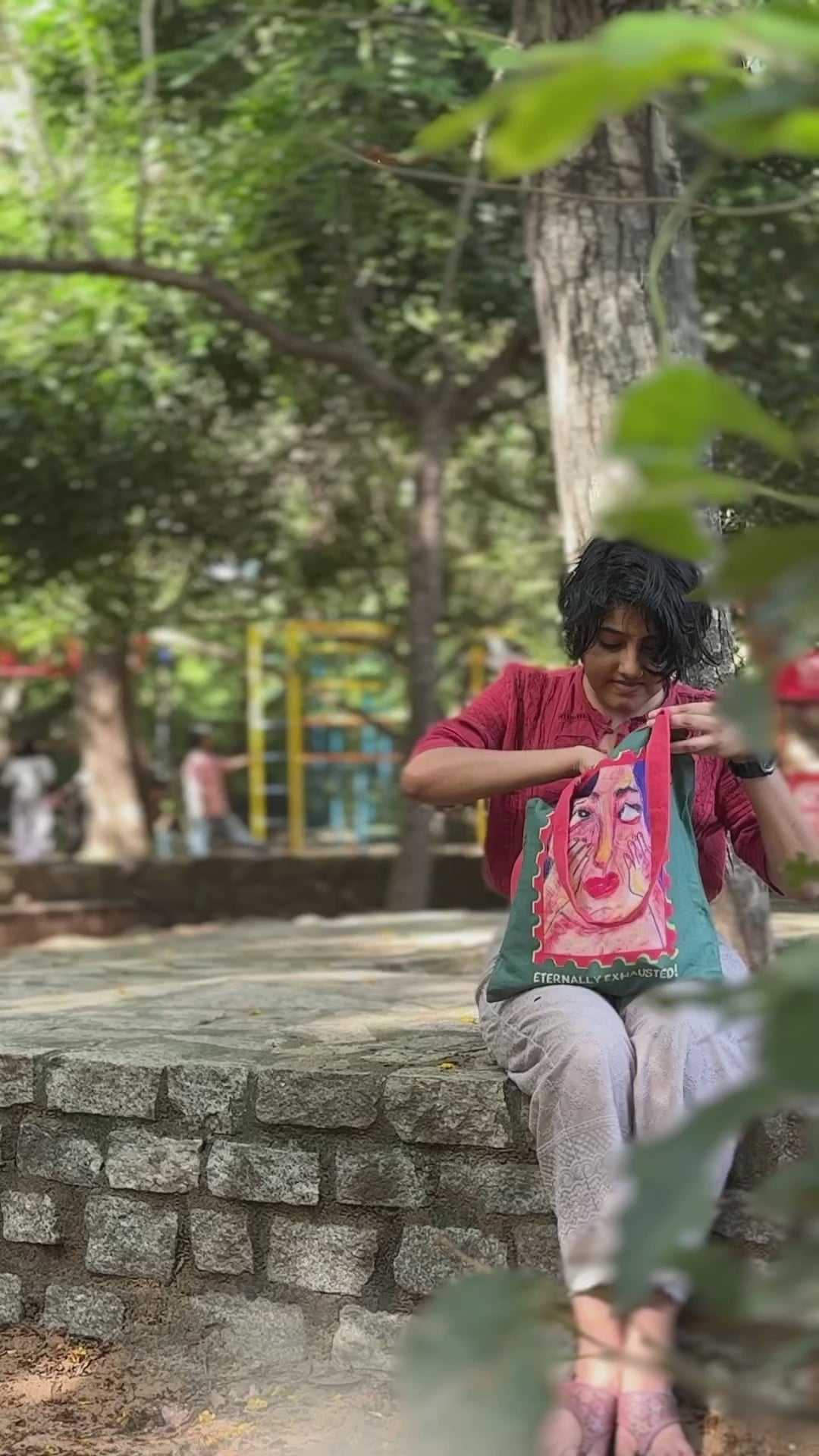 Story time : These bags were born out of my experiments with soft pastels. All the artwork is hand-drawn, scanned and printed on the bags. I can now safely say that soft pastels are my favourite medium to create and mess with! I went in with no plans, just started playing around with the chunky pastel stubs on my tiny sketchbook and had so much fun getting surprised by the textures and oh! all that blending (I have built forearm muscles purely by blending in the colours!). So I finally decided to breathe life into them by turning them into these stunningly vibrant totes.