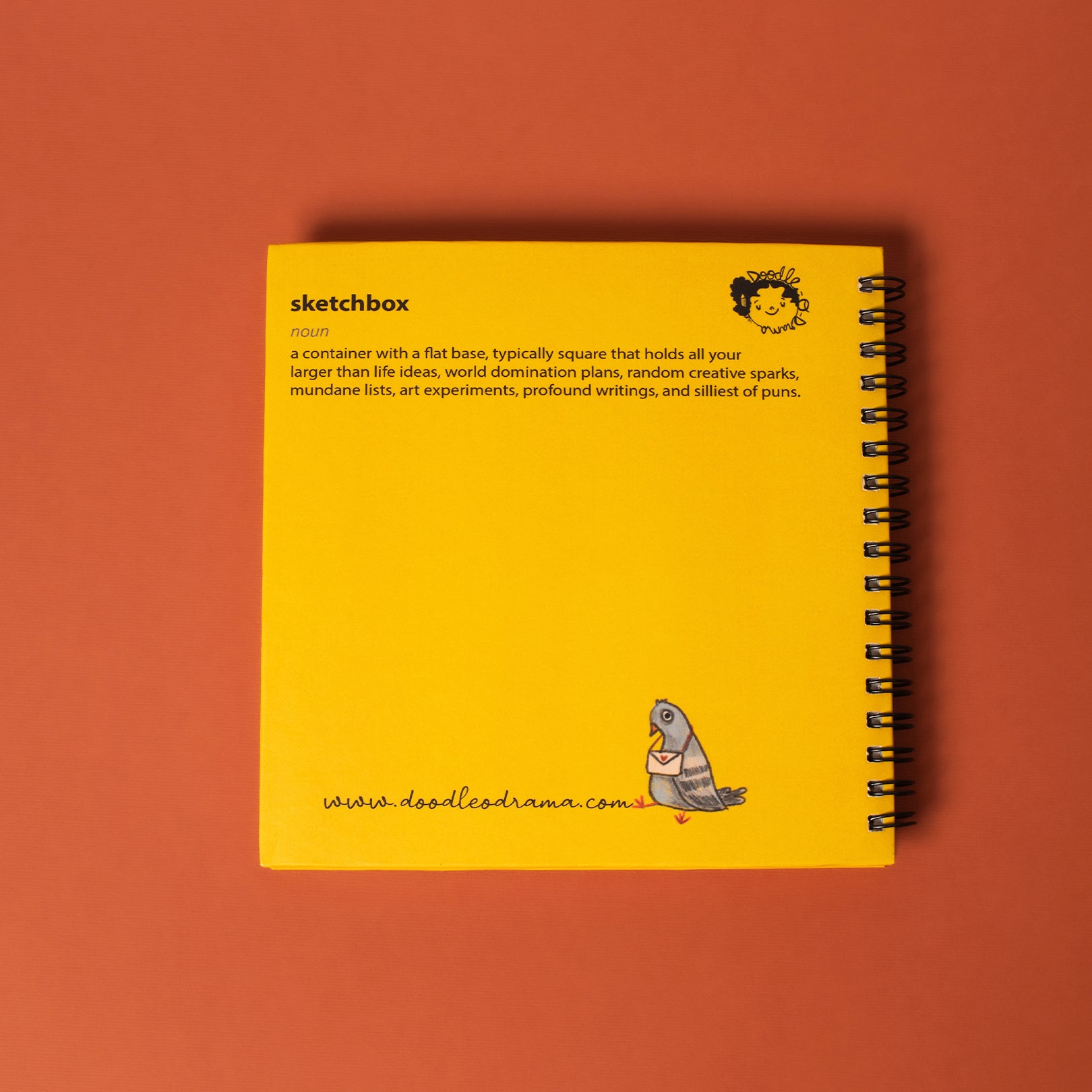 Why 'Sketchbox' : Glad you asked (even if you didn't!) After circle, square is my favourite shape and I decided to make all kinds of fun boxes; matchbox, sardine box, post box, watercolour box on these cute little square sketchbooks- a box on box (?) hence : sketchbox (tada!). You're probably not half as thrilled as I am with this play on words but I can assure you, that you'll still love these adorable, oh-so-vibrant books!